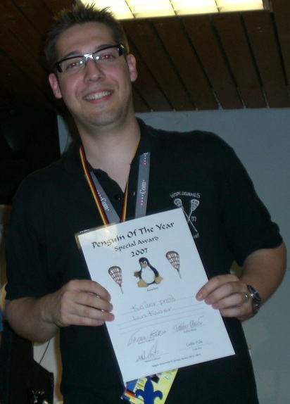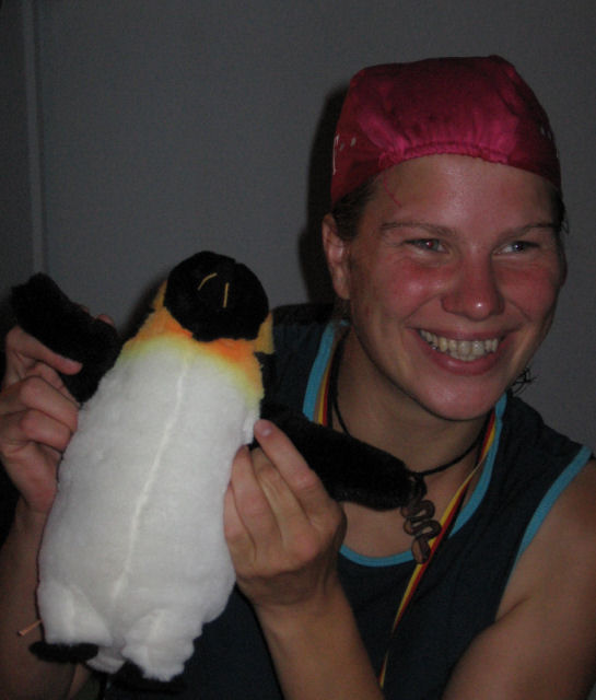 The sixth edition of the Penguin Of The Year award was presented at the closing ceremony of the World Games in Germany on July 28, 2007. For the second time, the grand prize went to a woman; Tereza Koubová from Czech Republic. Here are some photos of the winner: