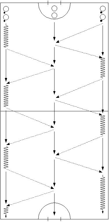 the players into three lines, one line in each of the corners and