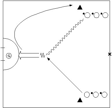 (without a ball) runs towards the rolling ball, picks it up and shoots,