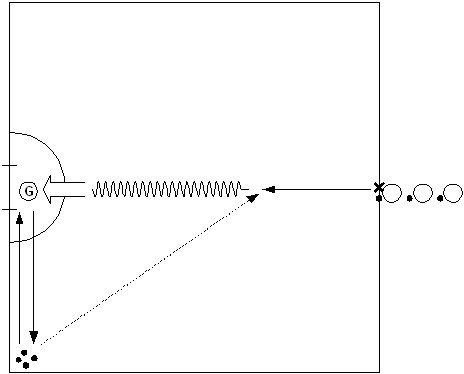 to the goal. The player receives the ball and shoots when the goalkeeper